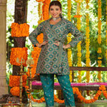Teal Chanderi Printed Clothing Set