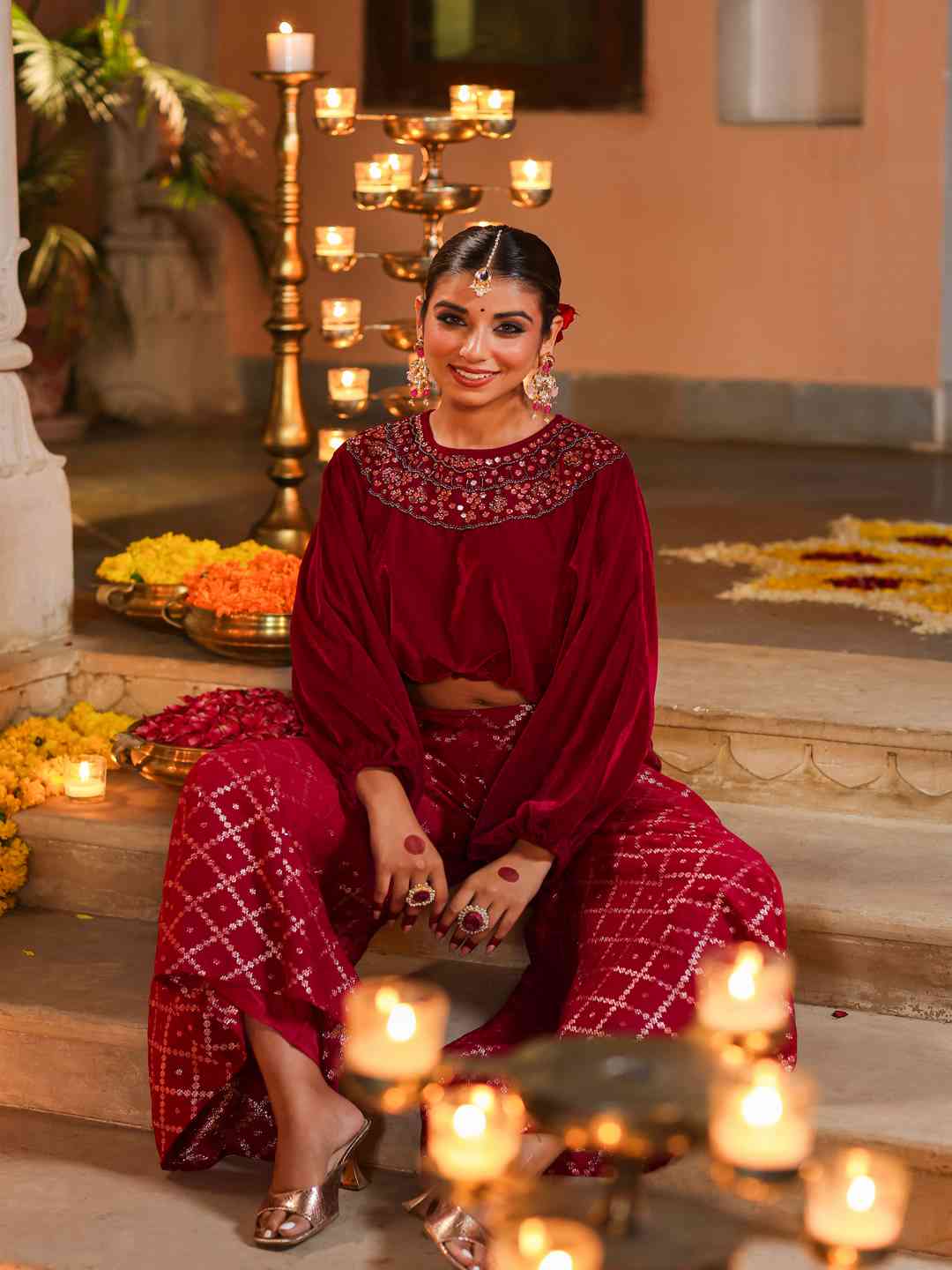 Fuchsia Velvet Embellished Clothing Set