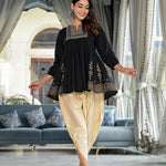 Black Ethnic Motif Printed Tunic & Dhoti Pant Co-Ord Set For Women With Zari Embroidery
