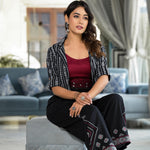 Black Geometric Printed Liva Rayon Shrug With Inner & Palazzo Set With Thread & Mirror Work