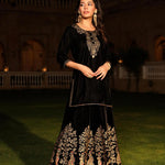 The Sunehri Black Zari Embroidered Velvet Top & Skirt Set With Sequins & Buttons