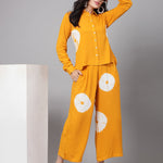 Mustard Tye-Dye Prints Co-Ords Set - Rayon Fabric, Full Sleeves, Shirt Collar And Hips Length