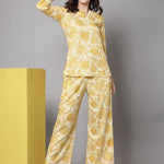 Mustard Floral Printed Co-Ords Set - Rayon Fabric, 3/4 Sleeves, Keyhole Neck And Hips Length