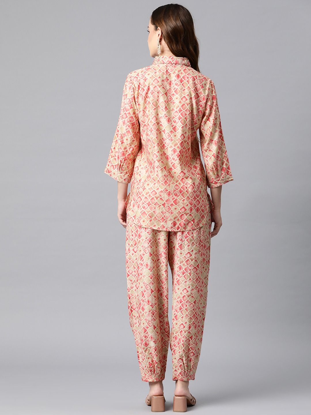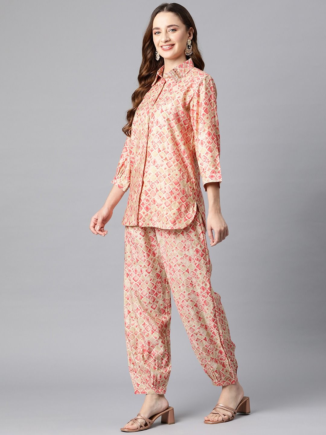 Shirt Style Cotton Fabric Pink Color Co-Ord Set