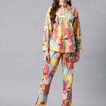 Shirt Style Cotton Fabric Yellow Color Co-Ord Set