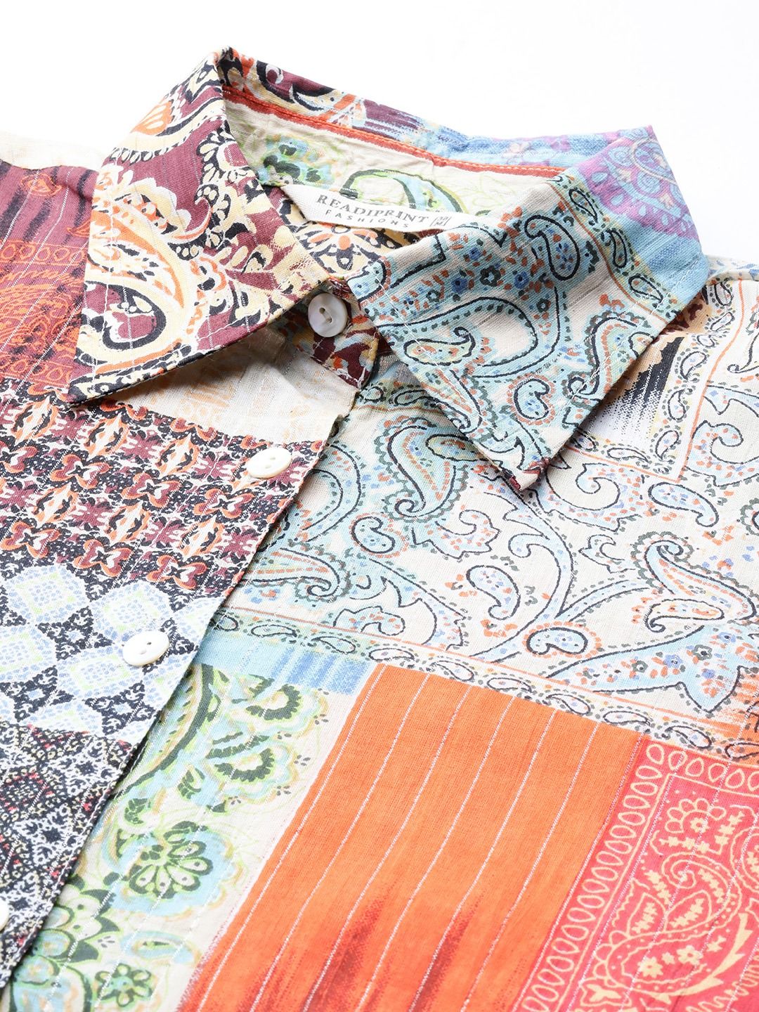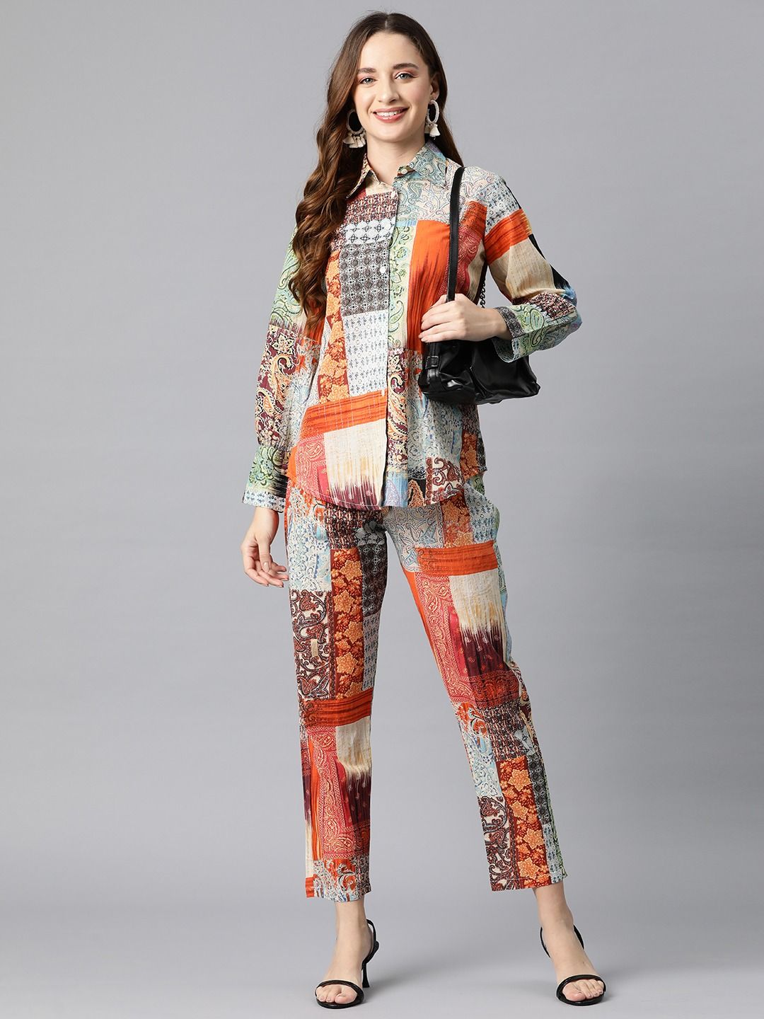 Shirt Style Cotton Fabric Multi Color Co-Ord Set
