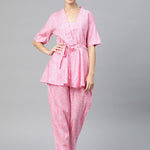 Frock Style Cotton Fabric Pink Color Co-Ord Set