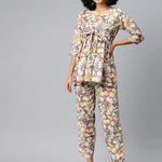 Description - Frock Style Cotton Fabric Beige Color Printed Top With Palazzo