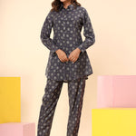 Shirt Style Silk Fabric Grey Color Co-Ord Set