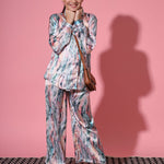 Shirt Style Satin Silk Fabric Green Color Co-Ord Set
