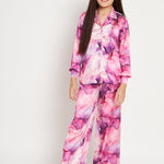 Shirts Style Satin Fabric Purple Color Co-Ord Set