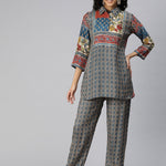 Straight Style Silk Fabric Blue Color Co-Ord Set