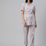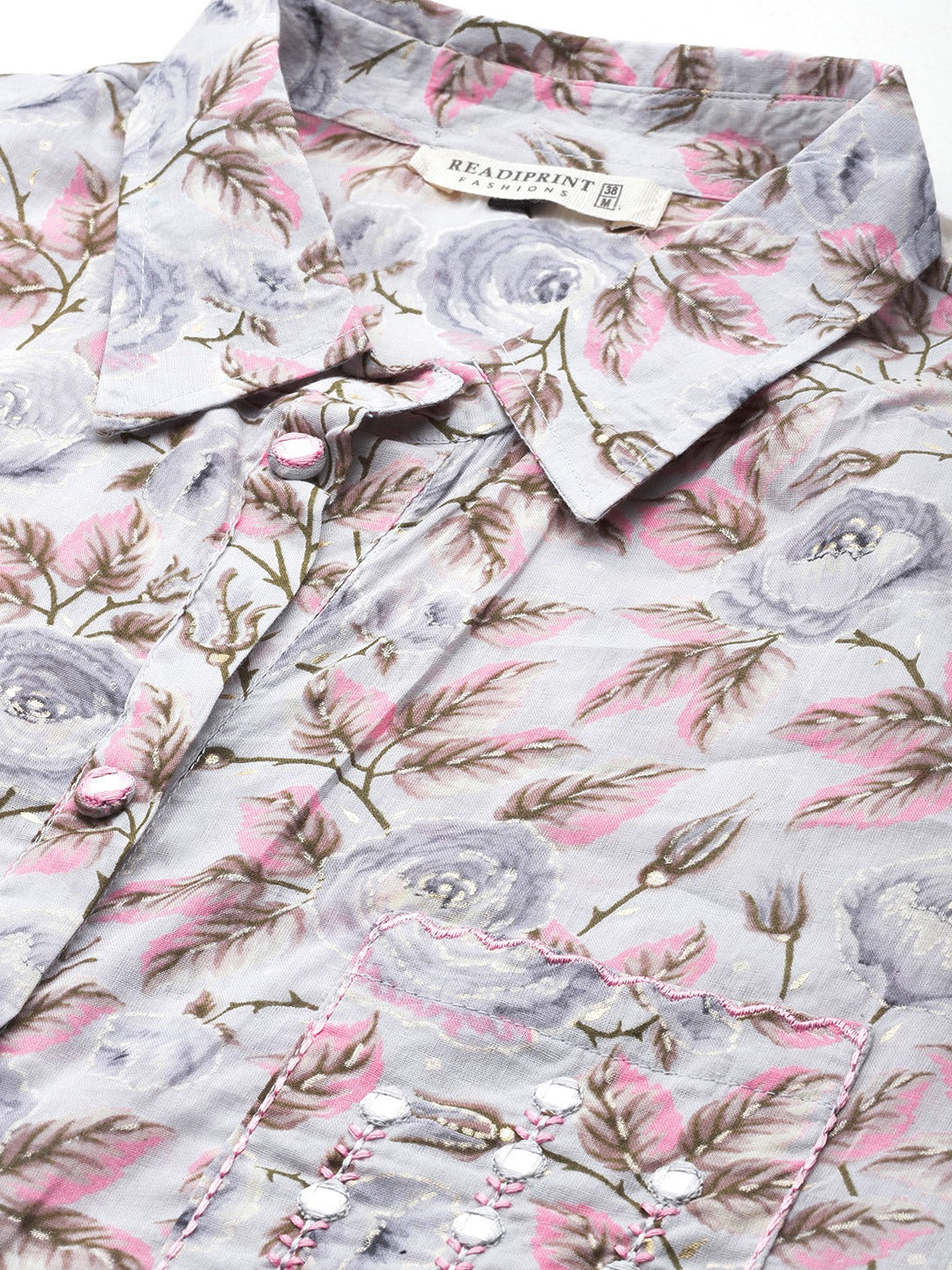 Shirt Style Cotton Fabric Grey Color Co-Ord Set