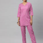 Straight Style Cotton Fabric Magenta Color Co-Ord Set