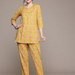 Straight Style Cotton Fabric Yellow Color Co-Ord Set