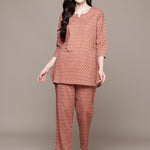 Straight Style Cotton Fabric Rust Color Co-Ord Set