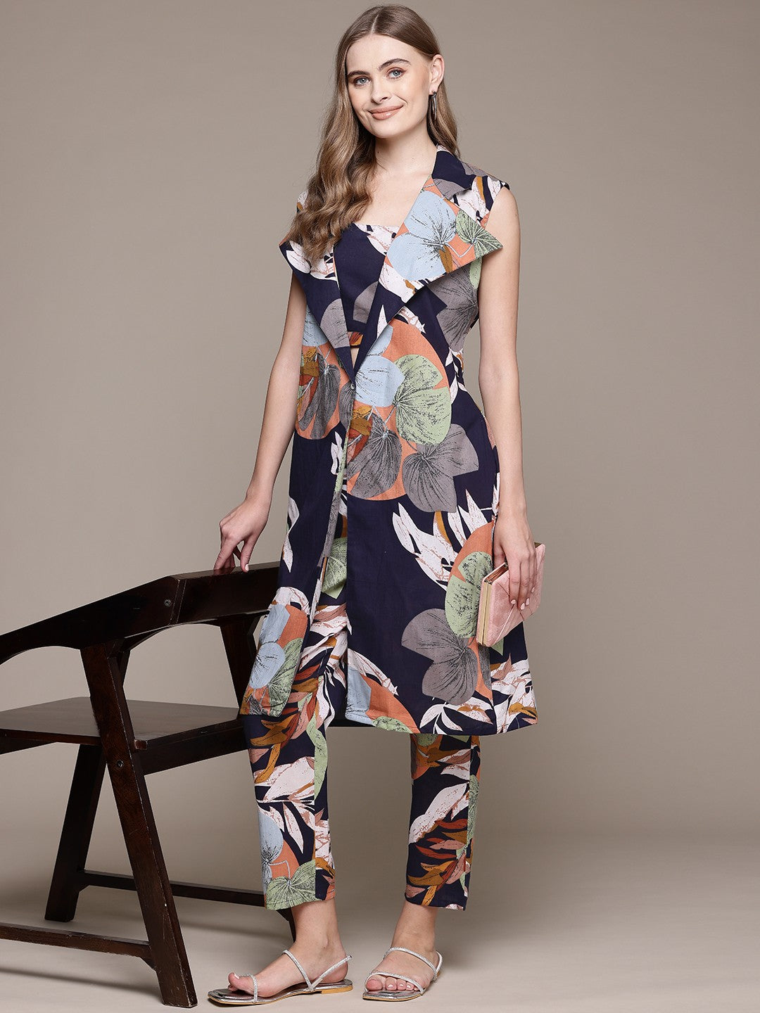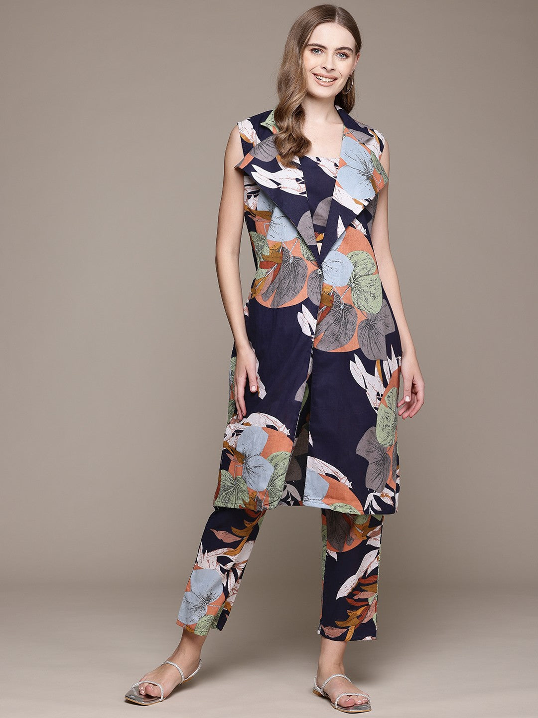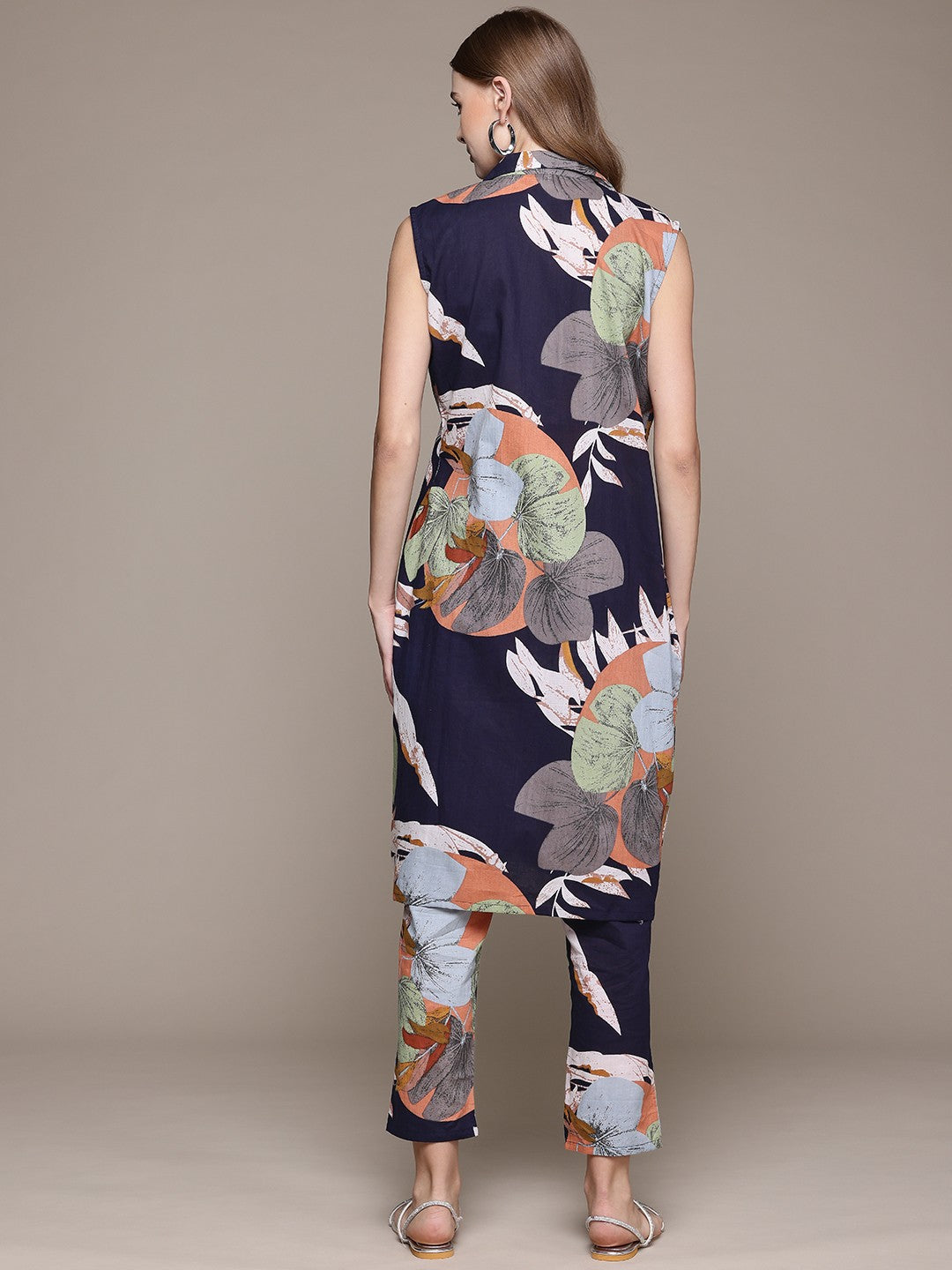 Straight Style Cotton Fabric Black Color Co-Ord Set With Shrug