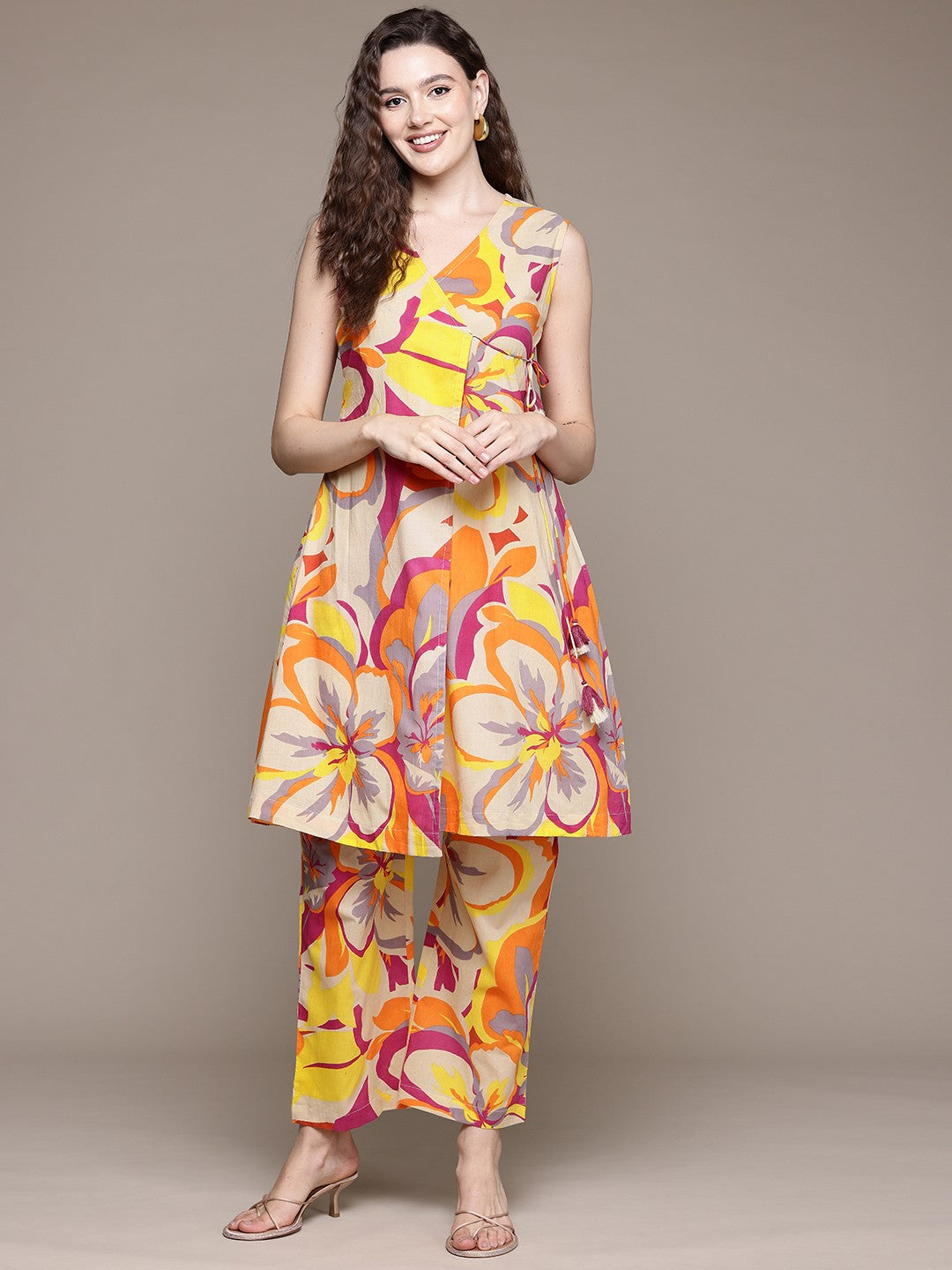 Kimono Style Cotton Fabric Multi Color Co-Ord Set