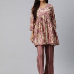 Frock Style Silk Fabric Burgundy Color Floral Printed Kurta And Bottom With Thread And Sequin Work