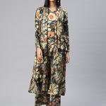 Top Style Silk Fabric Brown Color Floral Printed Kurta And Bottom With Printed Shrug