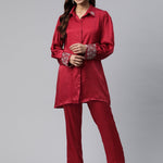 Shirt Style Silk Fabric Maroon Color Beads & Cut Dana Work Kurta And Bottom