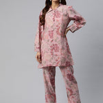 Shirt Style Silk Fabric Pink Color Beads & Floral Printed Kurta And Bottom