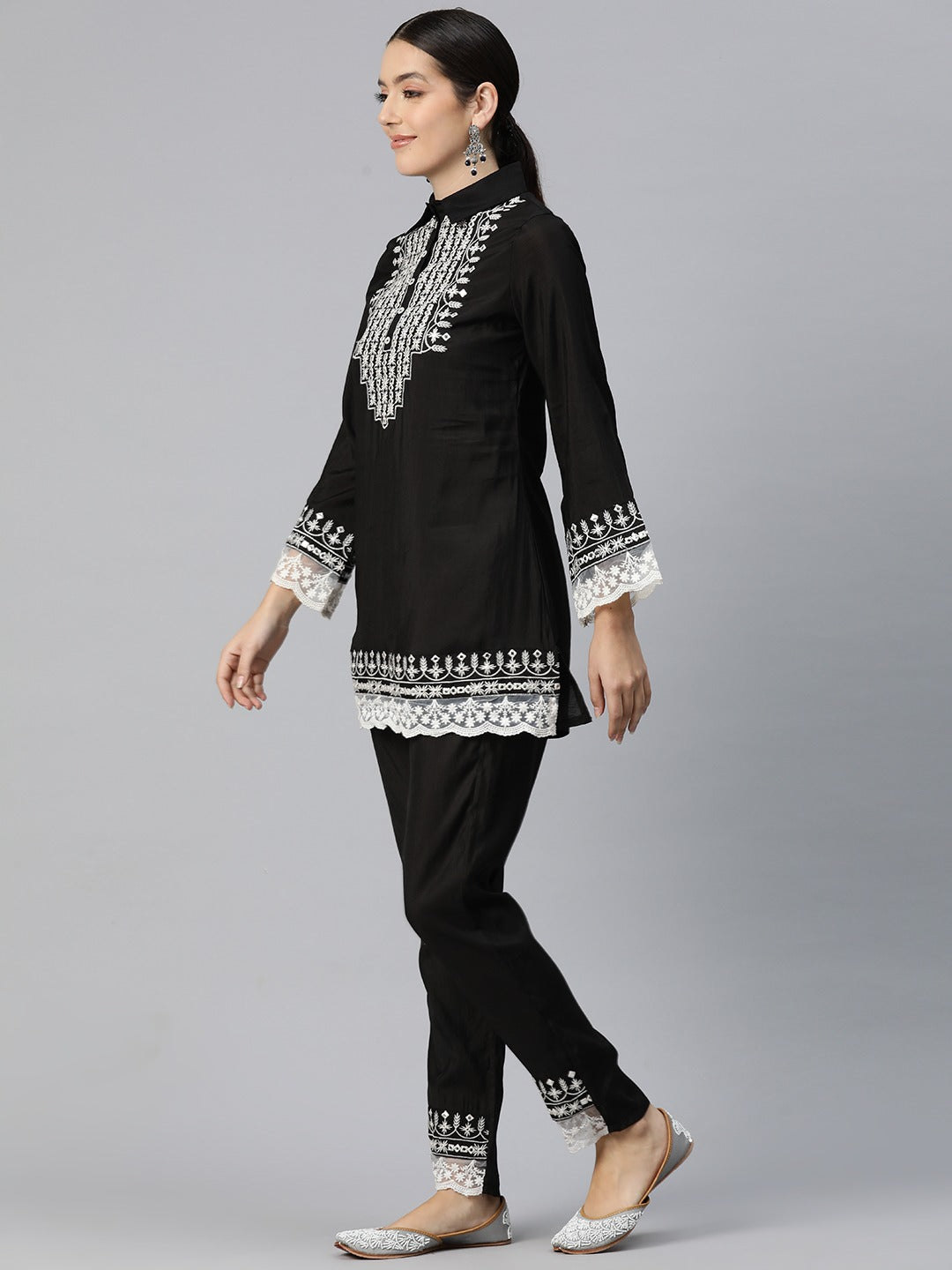 Embroidered Kurta & Trouser (Black)