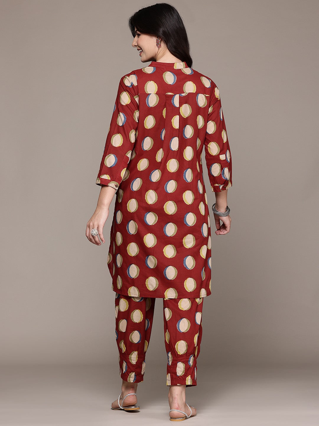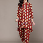 High-Low Style Cotton Fabric Maroon Color Co-Ord Set