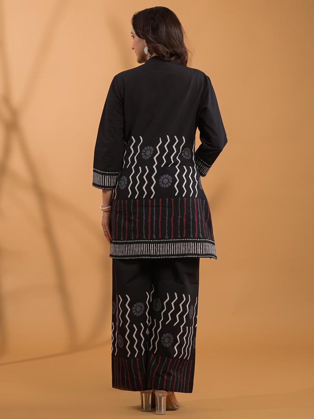 Straight Style Cotton Fabric Black Color Co-Ord Set