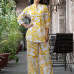 Curved Style Cotton Fabric Yellow Color Co-Ord Set