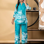 Curved Style Cotton Fabric Turquoise Blue Color Co-Ord Set