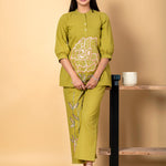 Straight Style Cotton Flex Fabric Green Color Co-Ord Set
