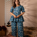 Floral Printed Short Puff Sleeves Top With Palazzos