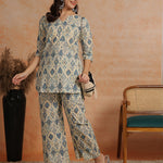 Ikkat Printed 3/4 Sleeves Tunic With Palazzos