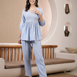 Blue Solid & Embroidered Rayon Co-Ord Set (Pre-Order)