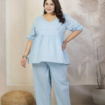 Plus Size Women Self Woven Kantha Cotton Co-Ord Set (Pre-Order)
