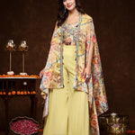 Beige Printed Party Wear Georgette Palazzo & Blouse With Jacket (Pre-Order)