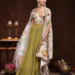 Mehandi Printed Party Wear Georgette Skirt & Blouse With Jacket (Pre-Order)