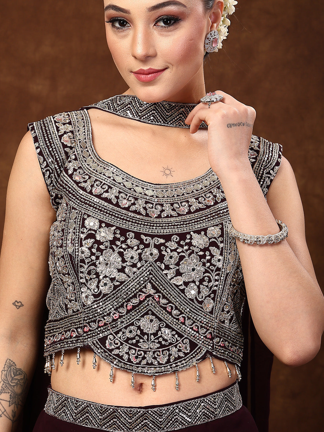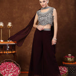Wine Embellished Party Wear Georgette Palazzo & Blouse With Dupatta (Pre-Order)