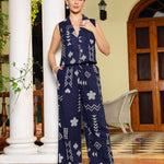 Blue Geometric Printed Rayon Slub Co-Ord Set (Pre-Order)