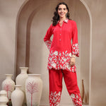 Red Solid & Embroidered Rayon Co-Ord Set (Pre-Order)