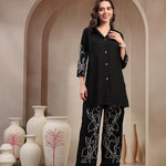 Black Solid & Embroidered Rayon Co-Ord Set (Pre-Order)