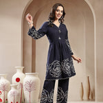 Navy Blue Solid & Embroidered Cotton Co-Ord Set (Pre-Order)