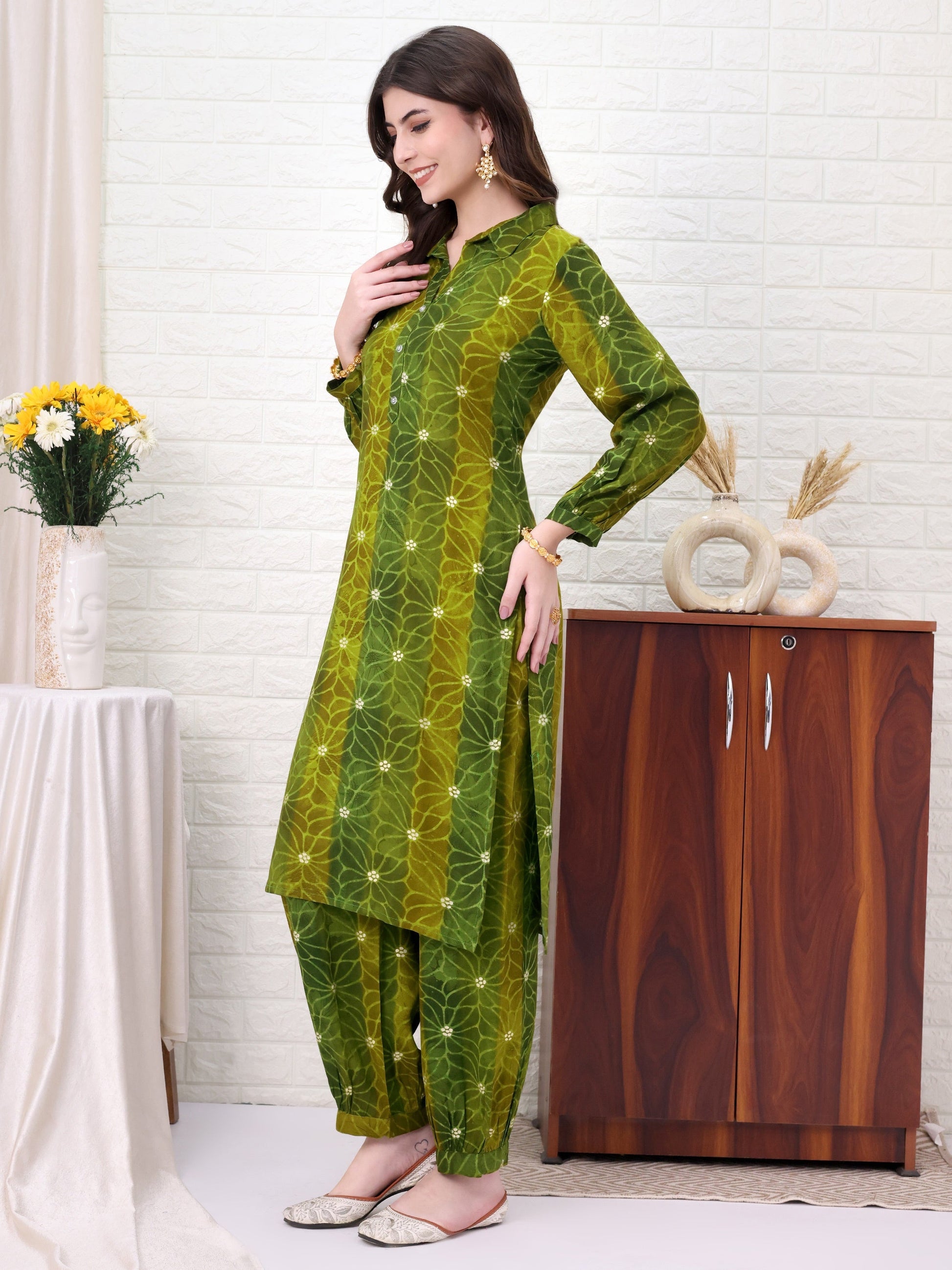 Green Viscose Rayon Embellished Co-ords Set