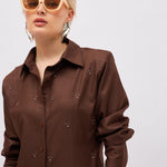 Women Coffee Brown Front Studded Slim Fit Shirt