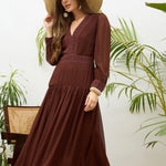 Women Dark Brown V-Neck Lace Detail Maxi Dress