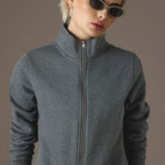 Dark Grey Fleece Front Zipper Jacket, in Fleece fabric, Unlined, Regular Length, Regular Fit, Zipper Closure, Straight Hemline and features Inlay Pockets At Side