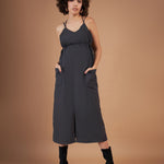 Women Dark Grey Front Pockets Parachute Dungaree Dress