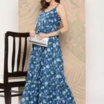 Blue Abstract Printed Shoulder Strap Dress