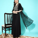 Black Embroidered Solid Dress With Net Sequence Dupatta